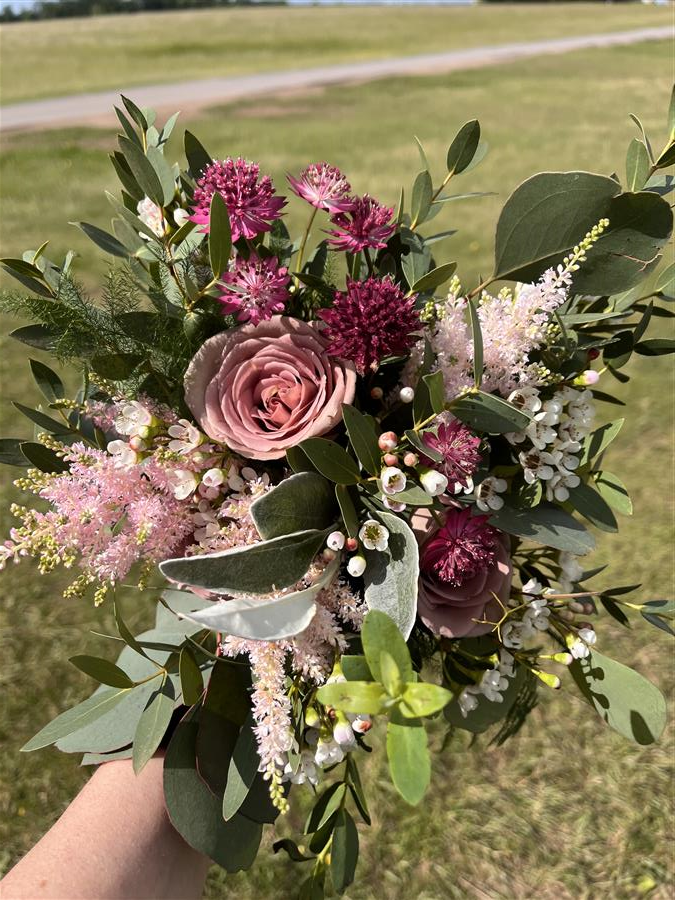 • We were so pleased with our wedding flowers! Our seasonal/summer vision — the marquee flowers were a standout. Thank you again!